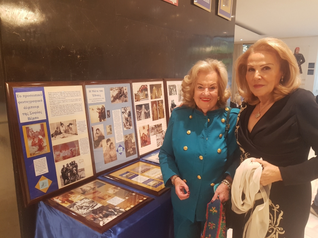Η υπεύθυνη του Αρχείου κα. Ντέμπορα Λεβιθοπούλου ξεναγεί τον αρχηγό της Πολεμικής Αεροπορίας Α/ΓΕΑ αντιπτέραρχο Θεμιστοκλή Μπουρολιά στα προσωπικά αντικείμενα της Σοφίας Βέμπο που διαθέτει το Αρχείο Ελληνικών Γραμμάτων.