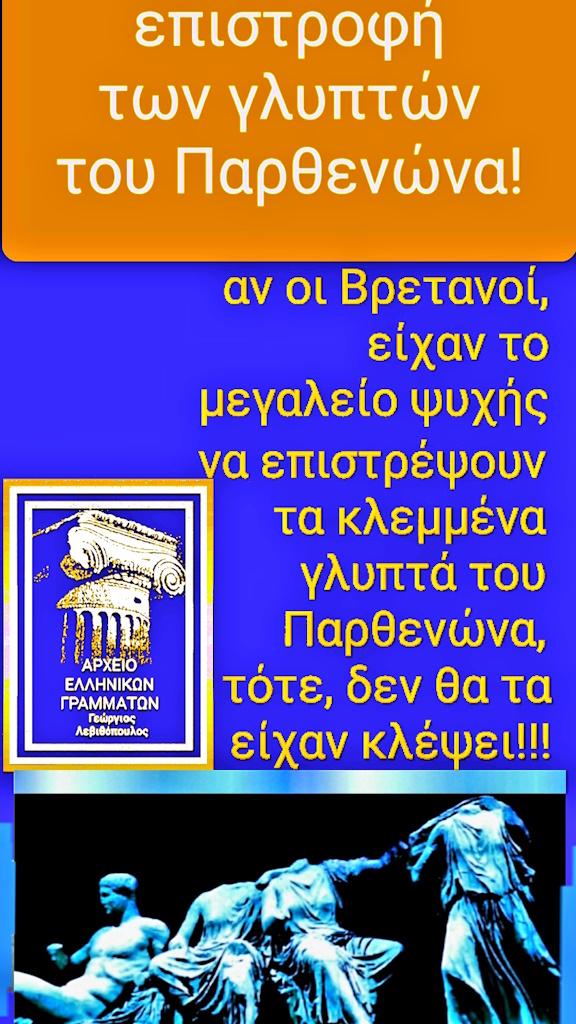 ΜΕΓΑΛΗ ΗΛΕΚΤΡΟΝΙΚΗ ΕΚΘΕΣΗ ΜΕ ΘΕΜΑ ΤΗΝ ΕΠΙΣΤΡΟΦΗ ΤΩΝ ΓΛΥΠΤΩΝ ΤΟΥ ΠΑΡΘΕΝΩΝΑ ΕΙΔΙΚΑ ΓΙΑ ΤΗΝ ΕΛΛΗΝΙΚΗ ΟΜΟΓΕΝΕΙΑ ΣΕ ΟΛΟΚΛΗΡΟ ΤΟΝ ΚΟΣΜΟ